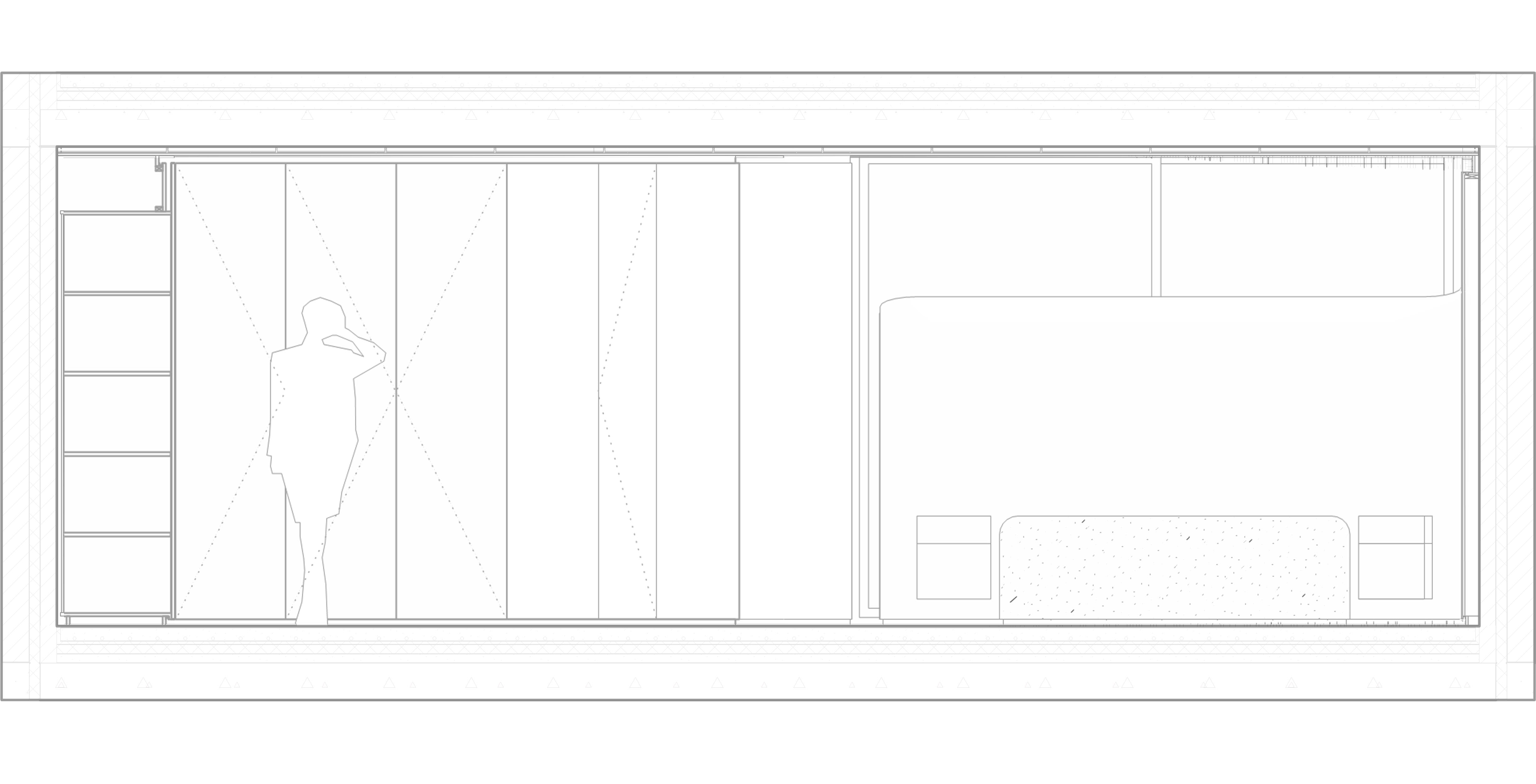 Gevraagd: Een woonst waar rust heerst. Waar alles kan worden opgeborgen. De sfeer van een abdij. Dromen van een huis met lege ruimten. Opperste optische eenvoud. Vormelijke abstractie. Favoriete kunst: Kenya Hara (kunstenaar) Robert Ryman (schilder) Arvo Pärt, Spiegel im Siegel (muziek) Ontwerp: Rust en orde, de beleving van de oneindige rondgang (abdijgevoel), de ervaring van een woning met zachte geleidende vormen, de lege ruimte waar toch veel in gebeurt, afwisselende ervaringen, steeds terugkerend naar de rust. Into Tranquility